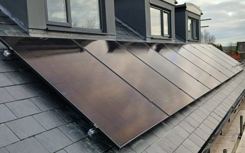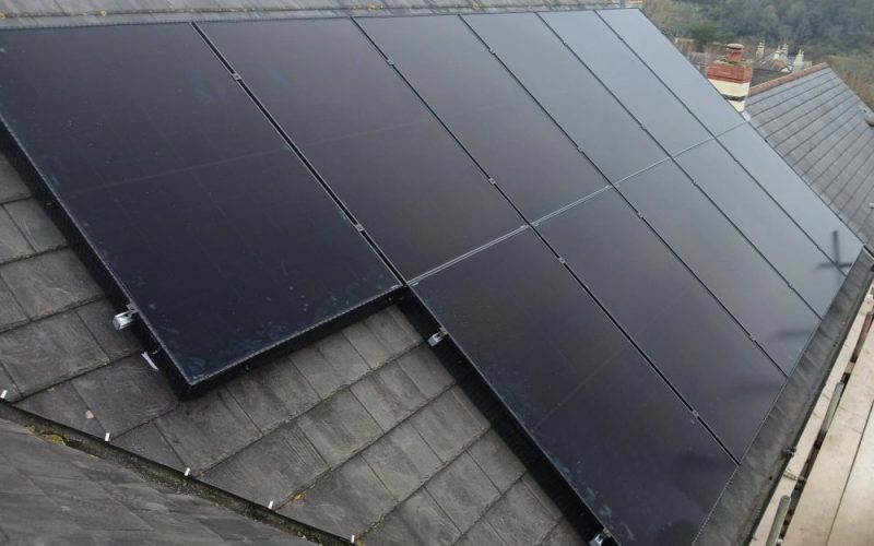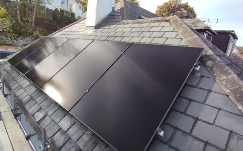 This 9-panel solar PV and battery system was installed along with a new air source heat pump to heat the property with solar generated energy.